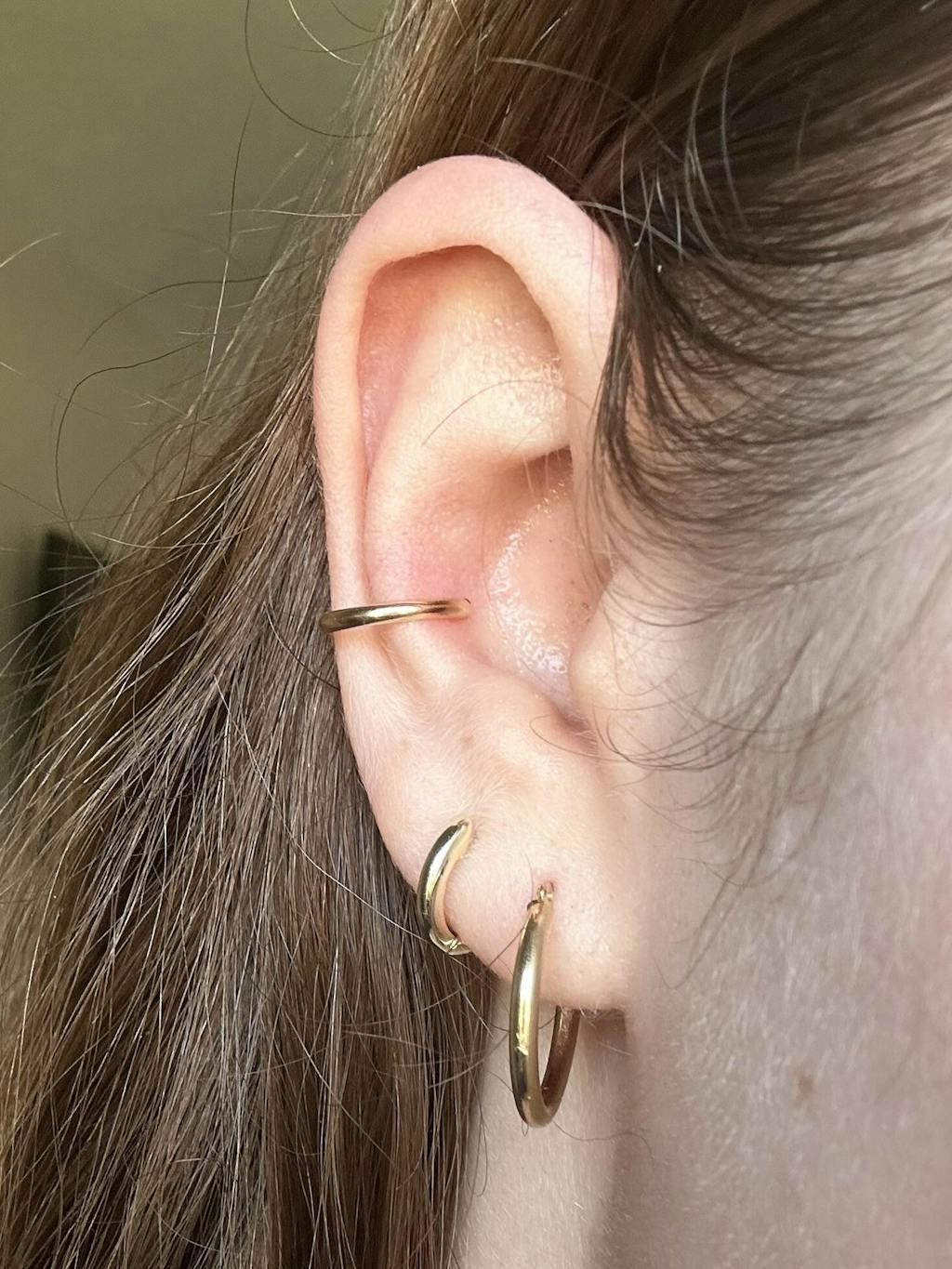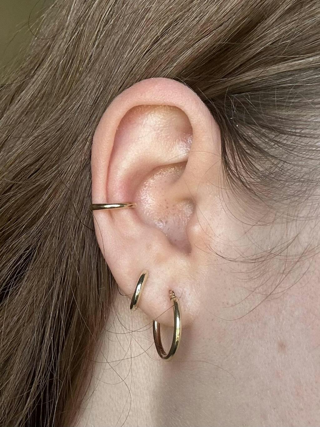 Meet our Dainty Ear Cuff - it's the perfect simple cuff for those who want to add to their earring stack without having to get another piercing! Lightweight and adjusts to your ear for a comfy fit. Pairs great with our Everyday Hoop Earrings for a minimalist look.