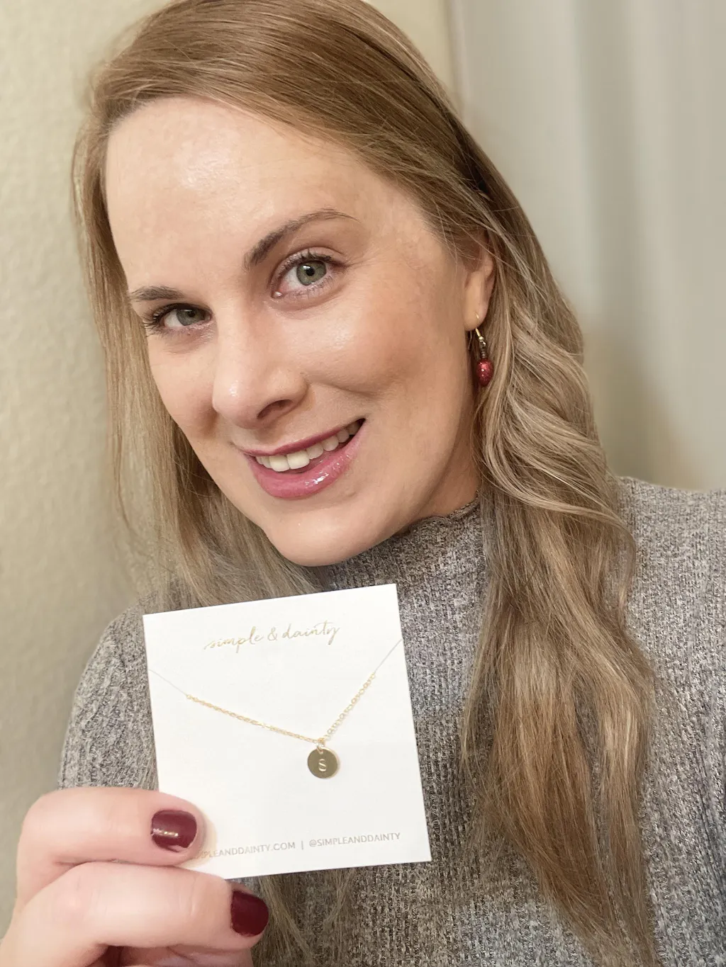 Our Dainty Initial Necklace will be your next favorite necklace - it’s simple, minimal, and so versatile! Make it your own by wearing a loved one’s initials or your own initial. It also makes the perfect personalized gift for a new mama, your bridesmaids, your friend’s birthday, and everyone else you love. You can wear it every day - yes, even in the shower and to sleep!
